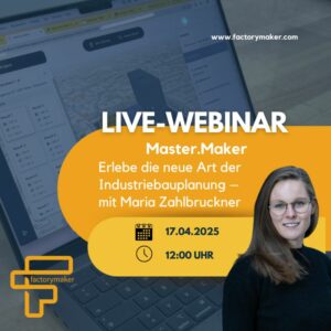 factorymaker took part in the BuiltWorld webinar “Modelling & Simulation: Computer-Aided Factory Planning” (Computergestützte Fabrikplanung), which focused on how digital methods are reshaping industrial building projects. The session explored the role of modelling and simulation in factory planning, the benefits of digital twins, and how new tools can improve efficiency